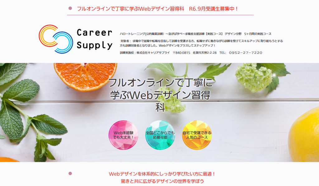 R6.9月開講!「フルオンラインで丁寧に学ぶWebデザイン習得科」受講生募集!