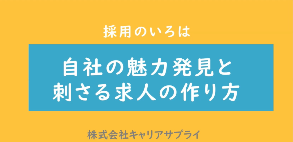 人材確保に向けて企業 経営者・採用ご担当者様向けの新しいコンテンツです。 ~採用のいろは 自社の魅力発見と刺さる求人の作り方~ 採用のコツを楽しく学び、自社の魅…