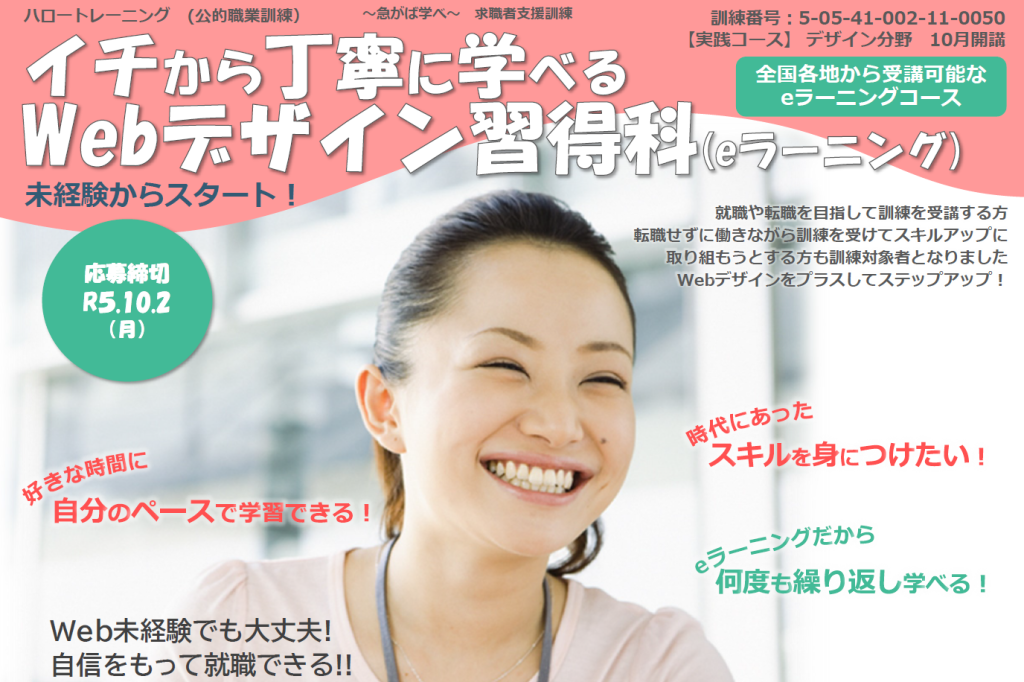 R5年10月開講受講生募集!人気のeラーニングコース「イチから丁寧に学べるWebデザイン習得科」