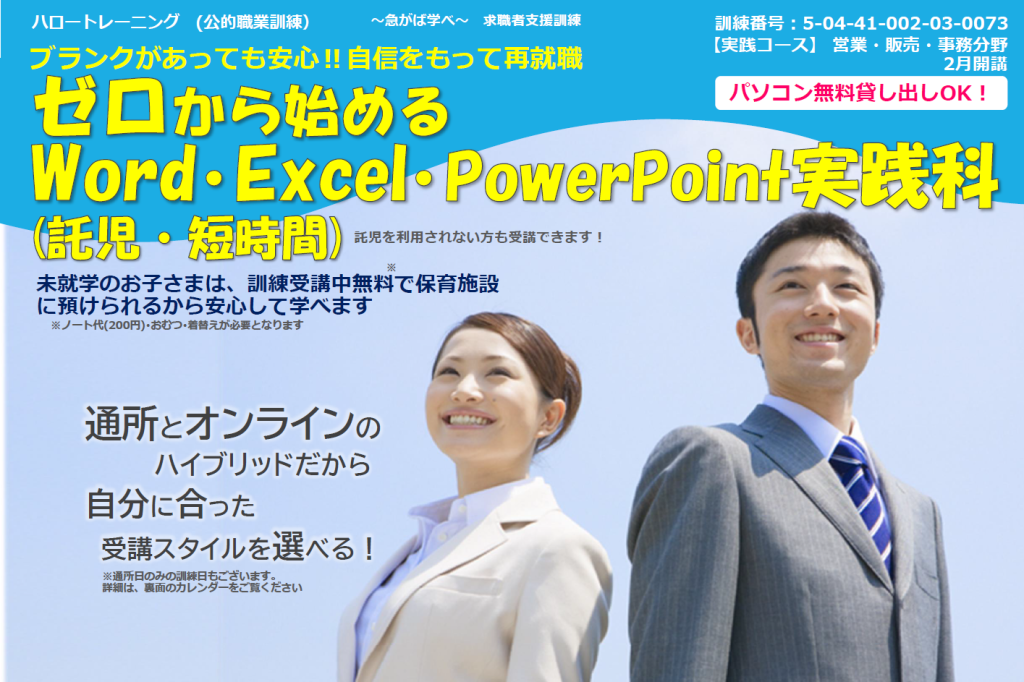 令和5年2月開講 ゼロから始めるWoed・Excel・パワポ実践科の募集を開始しました! 1日4時間 通所OK オンラインでもOK!! 応募の締め切りは 令和5…