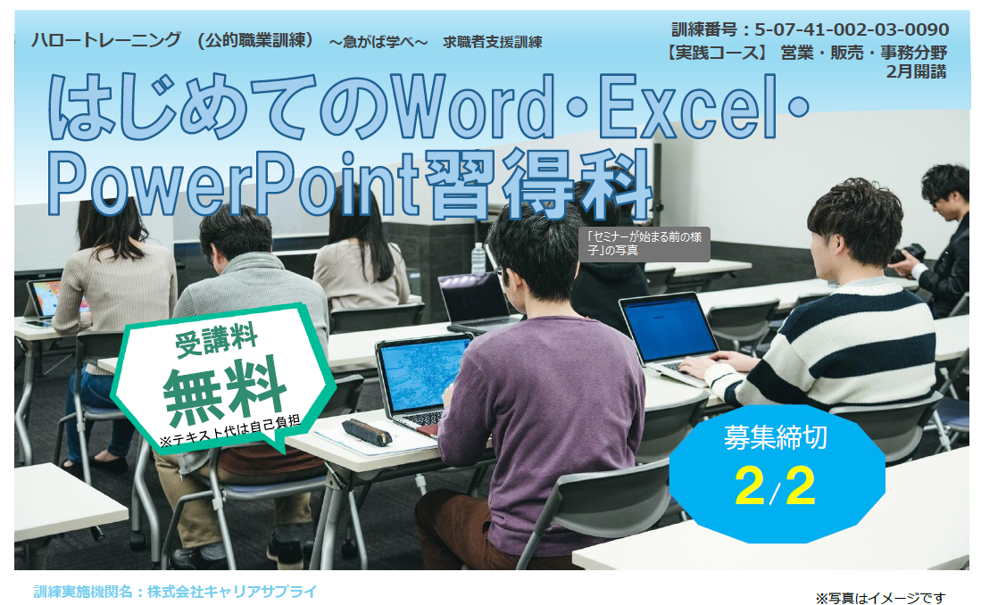 2月開講「はじめてのWord・Excel・PowerPoint習得科」受講生募集開始!締切は2月2日